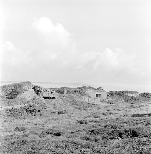 Vue générale de la batterie de Kerviniou en 1969 : emplacements des pièces d'artillerie et traverses abrisImmatriculation