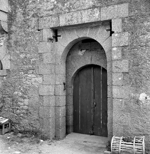 Vue du corps de garde crénelé n° 3 du bourg de Roscanvel en 1969 : porte d'entrée. A noter : la feuillure d'encastrement du pont-levis et le passage des chaînes de manoeuvreImmatriculation