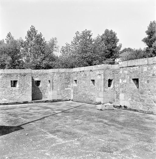 Vue du corps de garde crénelé n° 3 du bourg de Roscanvel en 1969 : terrasse et parapet percé de créneaux de fusilladeImmatriculation