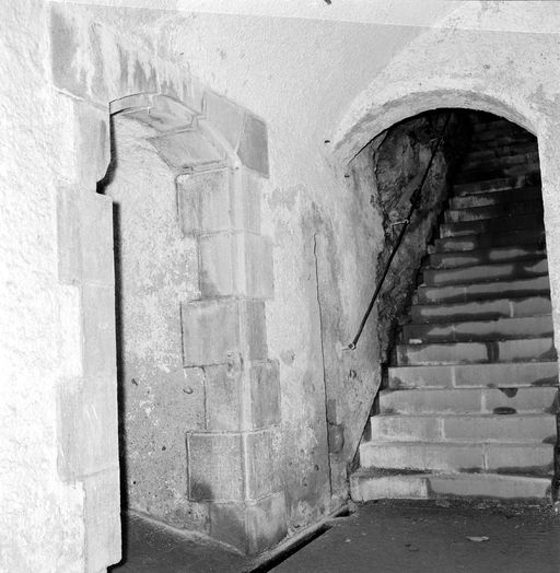 Vue de la batterie haute de la pointe Robert en 1969 : bas de l'escalier du magasin à poudre sous rocImmatriculation