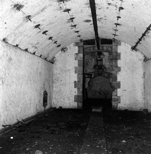 Vue de la batterie haute de la pointe Robert en 1969 : magasin à poudre sous roc, monte-chargeImmatriculation