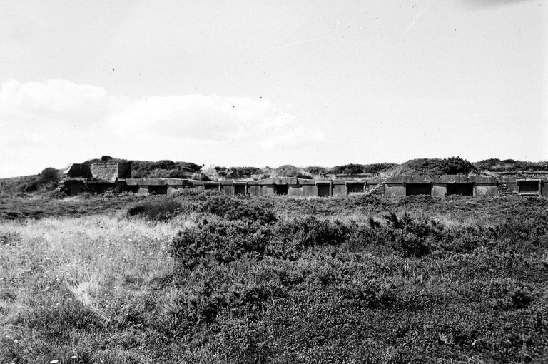 Vue générale de la batterie de 4 canons de 100 mm modèle 1881 à tir rapide des Capucins en 1969 : partie gaucheImmatriculation