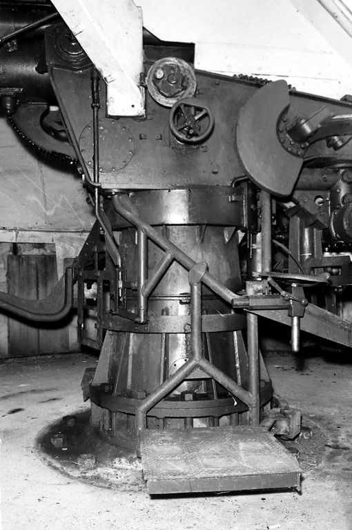 Vue de l'une des pièces de 105 mm SK C/32 Flak allemande de la batterie de Tremet en 1969Immatriculation