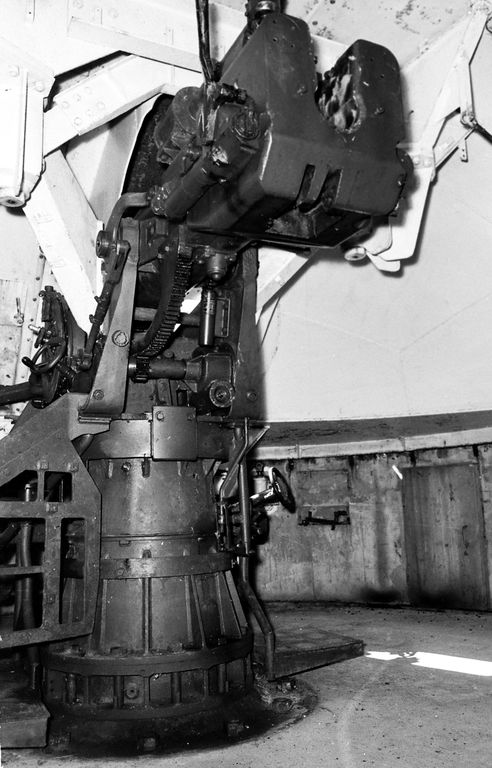 Vue de l'une des pièces de 105 mm SK C/32 Flak allemande de la batterie de Tremet en 1969Immatriculation