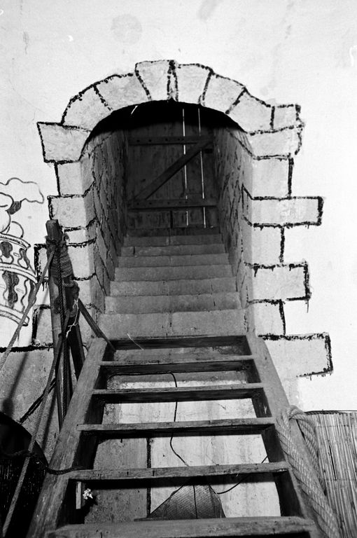 Vue du corps de garde crénelé n° 3 du bourg de Roscanvel en 1969 : intérieur, escalier d'accès à la terrasseImmatriculation