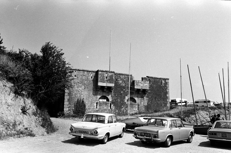 Vue générale du corps de garde crénelé n° 3 du bourg de Roscanvel depuis le terre-plein de la batterie en 1969Immatriculation