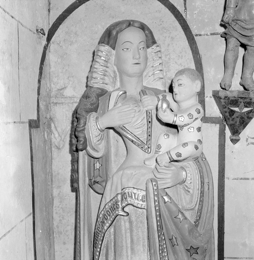 Statue (d'applique, grandeur nature) : Vierge à l'Enfant dite Notre-Dame de Bonne Nouvelle, chapelle Notre-Dame-de-Bonne-Nouvelle (Cast),