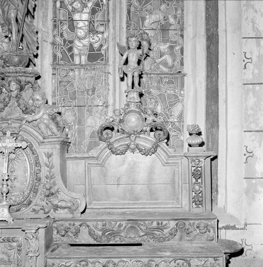 Gradins d'autel (2), autel, tabernacle (maître-autel, tabernacle à ailes), chapelle Notre-Dame-de-Bonne-Nouvelle (Cast),