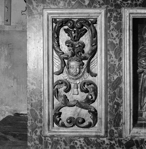 Gradins d'autel (2), autel, tabernacle (maître-autel, tabernacle à ailes), chapelle Notre-Dame-de-Bonne-Nouvelle (Cast),