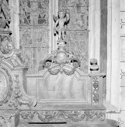 Gradins d'autel (2), autel, tabernacle (maître-autel, tabernacle à ailes), chapelle Notre-Dame-de-Bonne-Nouvelle (Cast),