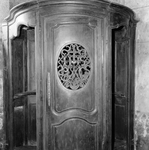 Confessionnal, bras sud du transept, détail porteImmatriculation