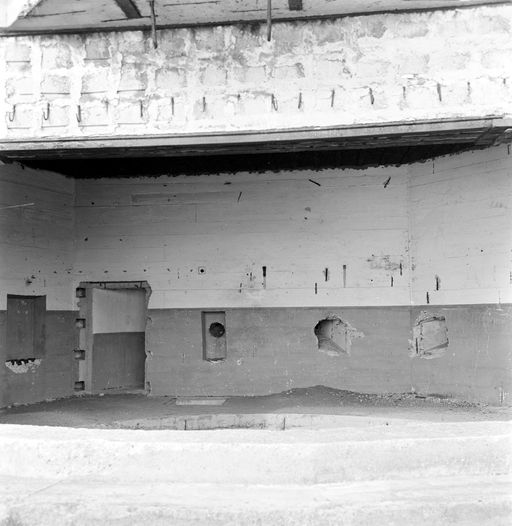 Vue de l'un des trois bunkers - casemates en 1969 (le quatrième bunker a été détruit en 1944 par une explosion) : chambre de tirImmatriculation
