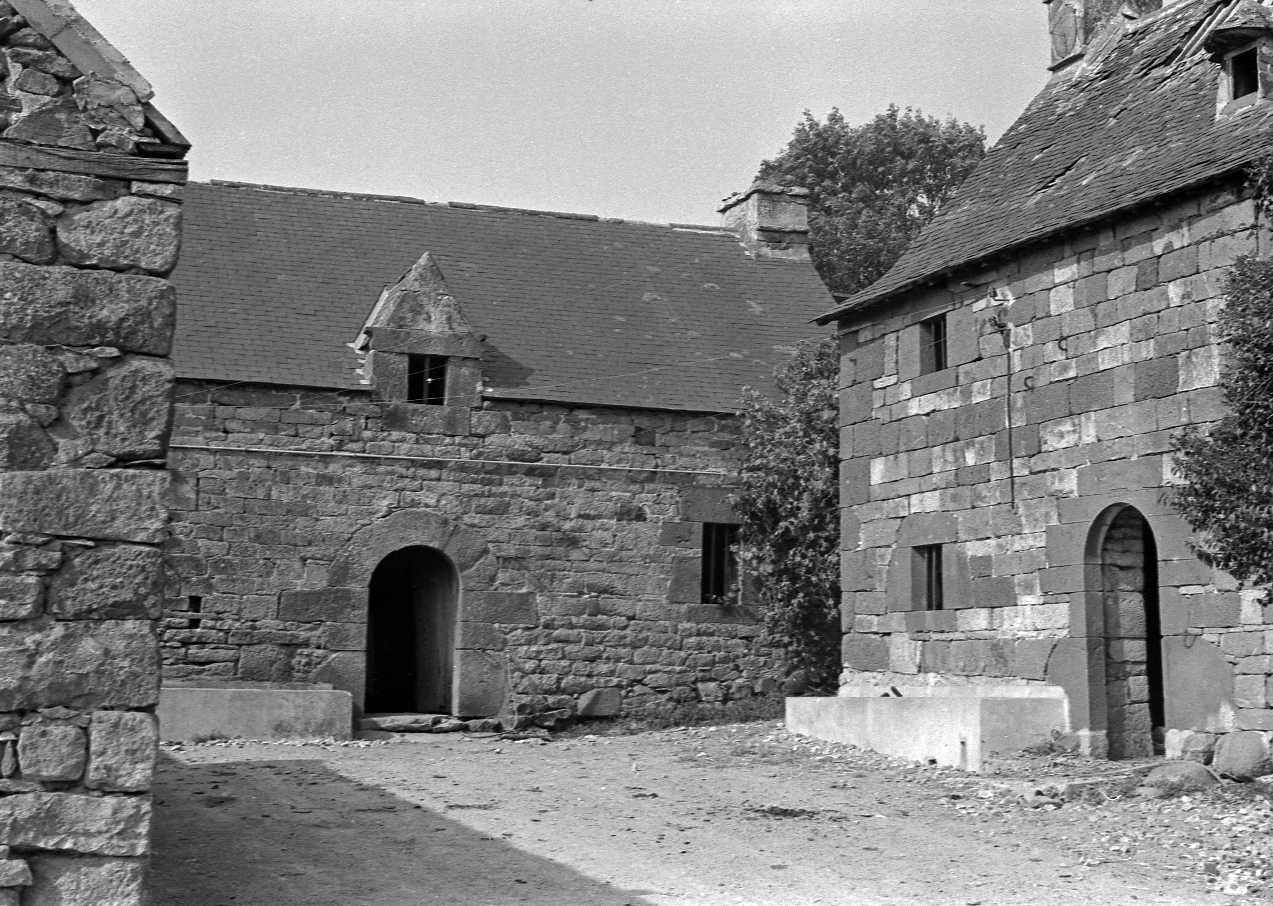 Logonna-Daoulas, Brétin Bras - Ancien manoir, maison, 17 siècle (date portée 1639) (maison de droite détruite depuis ; état en 1969)Immatriculation