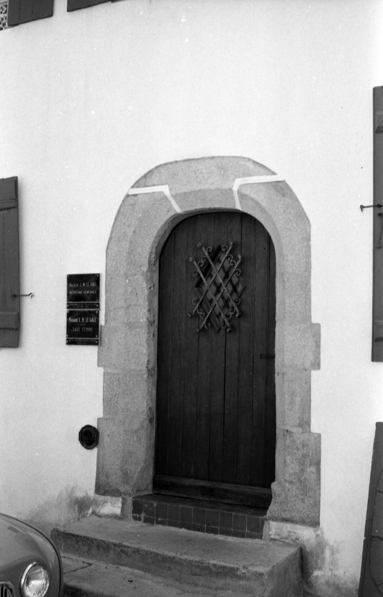 Rue Louis Pasteur côté ouest, maison au n°57, détail de la porte d'entrée en anse de panier. (1969)Immatriculation