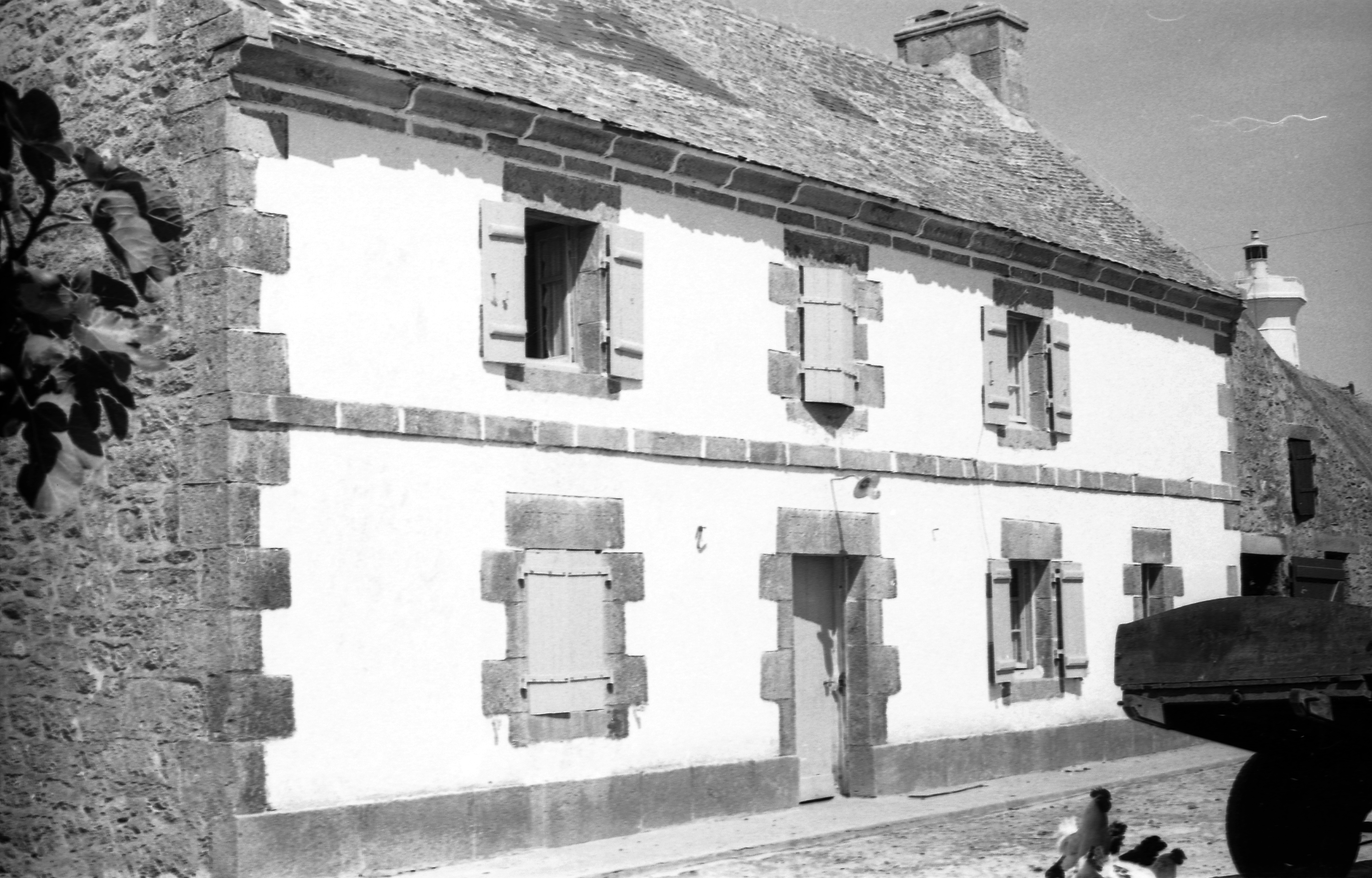 Kergadec, ferme 4, élévation antérieure du logis. Phare de Kergadec en arrière-plan. (1969)Immatriculation