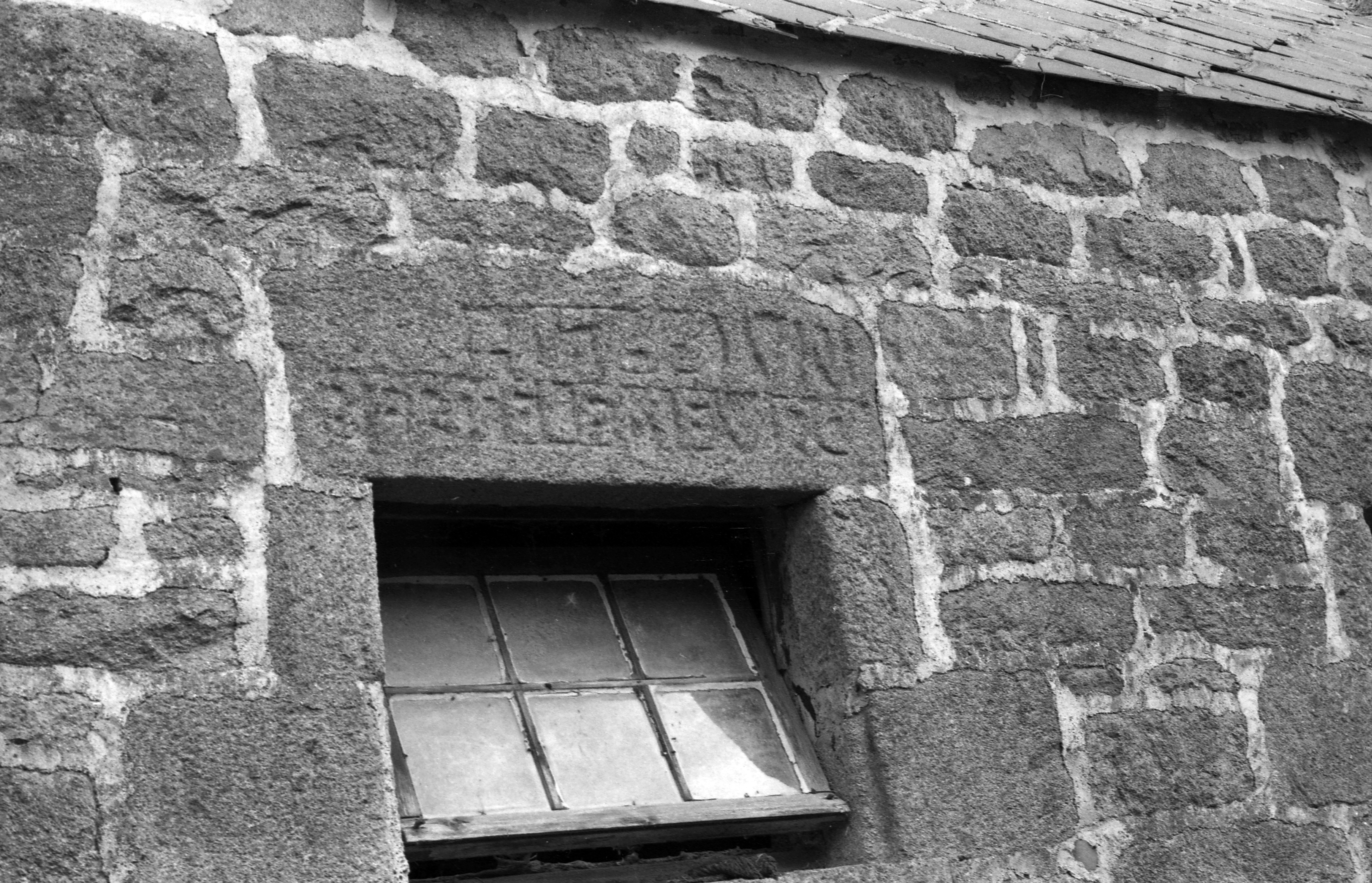 Lervily, étable, détail du linteau sculpté avec inscription : 1733 BARTHELEMY URCUN. (1969)Immatriculation