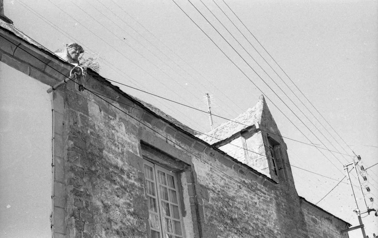 Pignon sud-ouest, détail de la crossette du rampant. (1969)Immatriculation