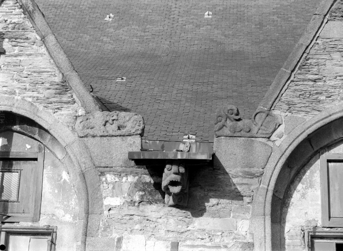 Elévation sud, détail sur une gargouille et une crossetteImmatriculation