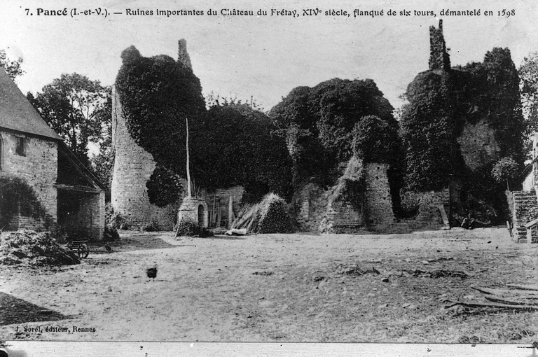 Carte postale ancienne. 7. Pancé (I.-et-V.) - Ruines importantes du château du Fretay.Immatriculation