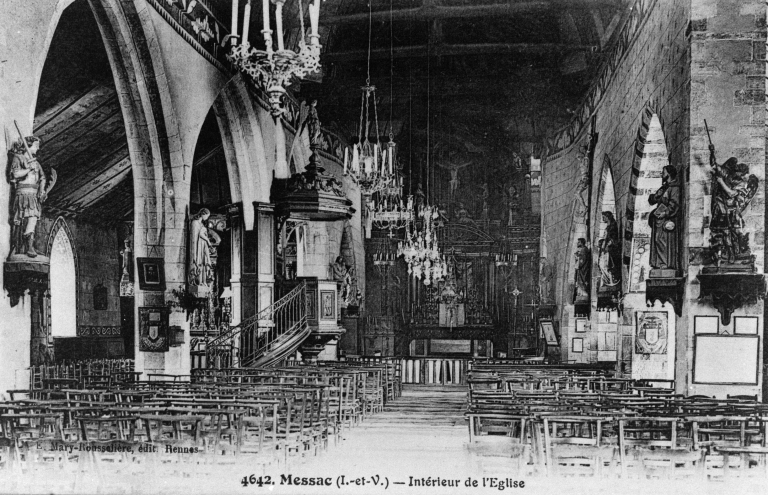 Carte postale ancienne. 4642. Messac (I.-et-V.) - Intérieur de l'église.Immatriculation