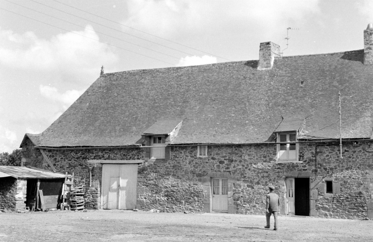Vue de l'élévation nord-ouest du bâtiment du 17e siècle (grange et logis) en 1969Immatriculation