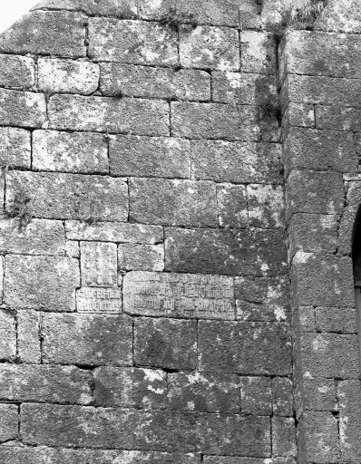 Elévation ouest : côté nord, 2ème niveau : pierre gravéeImmatriculation