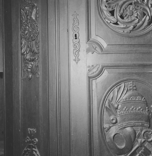 Confessionnal sud, porte centrale, platine d'entrée de serrureImmatriculation