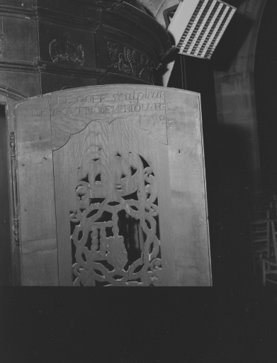 Confessionnal sud, inscription de la traverse supérieure porte centraleImmatriculation
