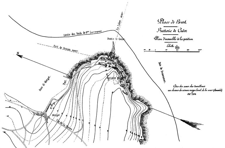 Plan de situation de la batterie de Beg Ar Gador ou pointe du Kador (4 canons de 95 mm)Immatriculation