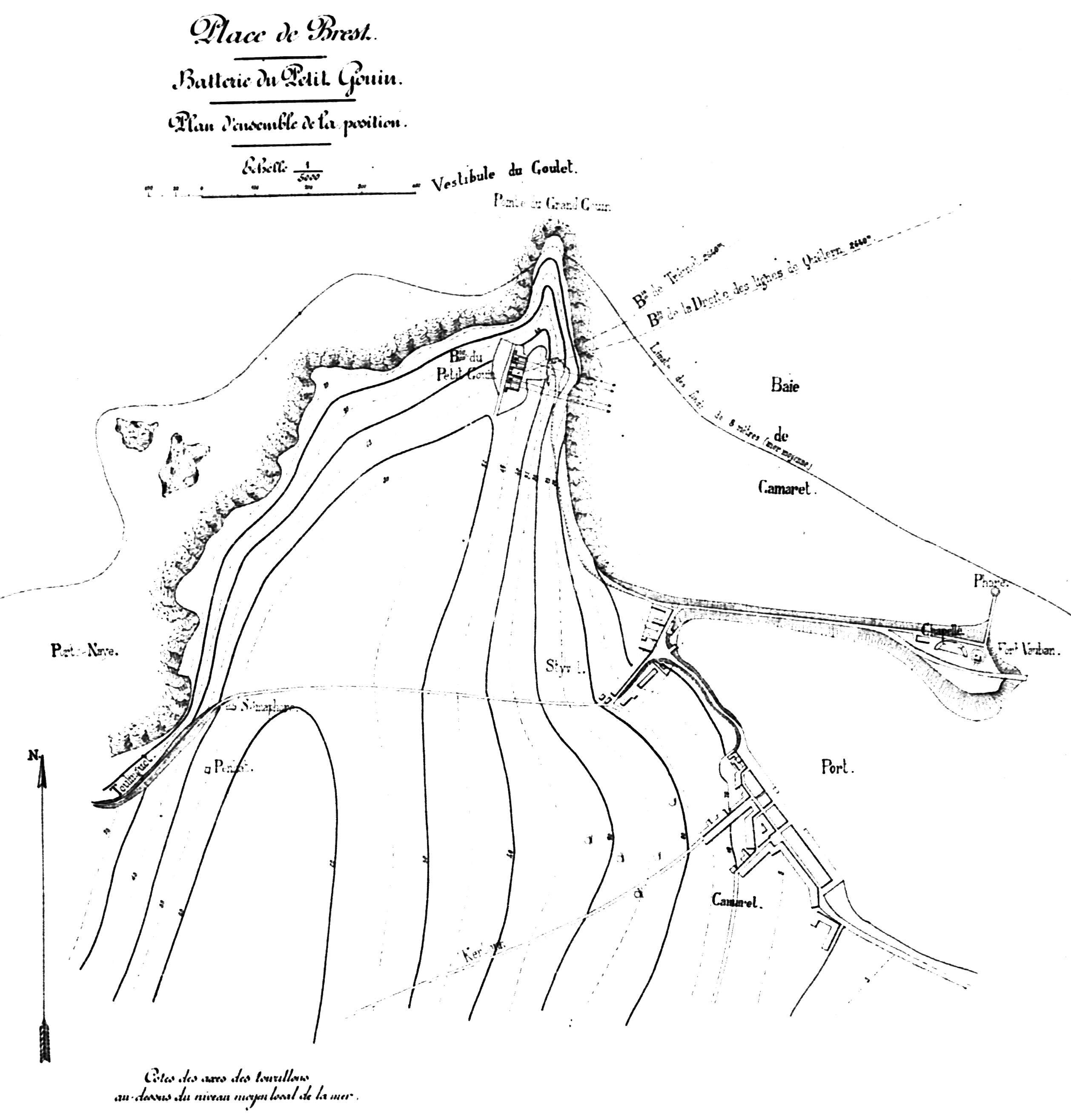 Plan de situation de la batterie de côte du Petit Gouin (4 canons G de 95 mm sur affûts G de côte)Immatriculation