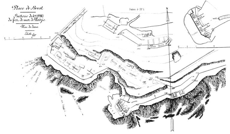 Plan de situation de la batterie à tir rapide du fort de mer du Portzic (4 canons M de 47 mm modèle 1885 TR)Immatriculation