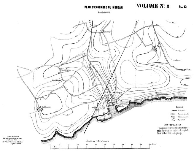 Plan d'ensemble du fort du Mengant et batteries extérieures, Direction d'Artillerie du génie de Brest, 10 août 1893, par le colonel Directeur d'Artillerie : CollombImmatriculation