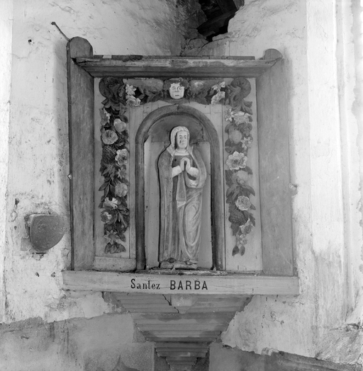 Statue (d'applique, petite nature) : sainte Barbe, chapelle Saint-Damien, Saint-Côme (Saint-Nic),
