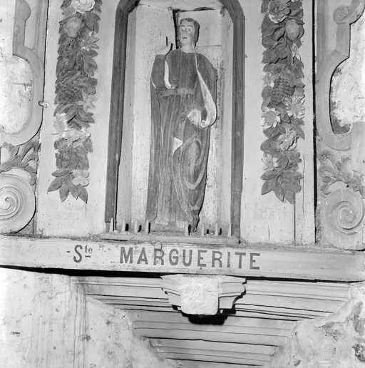 Statue (d'applique, petite nature) : sainte Marguerite, chapelle Saint-Damien, Saint-Côme (Saint-Nic),
