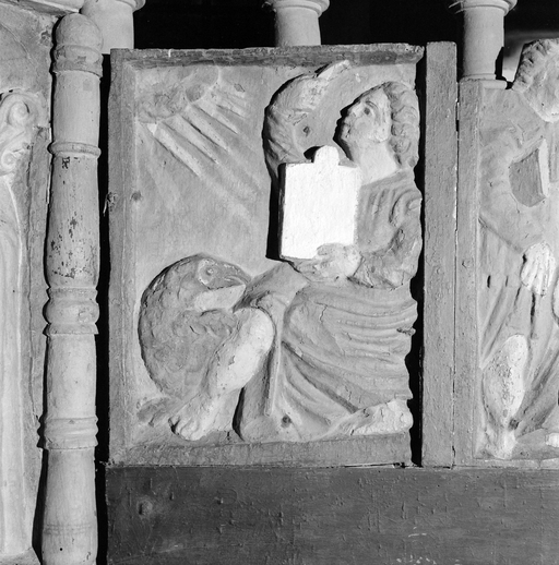 Détail des panneaux latéraux : saint JeanImmatriculation