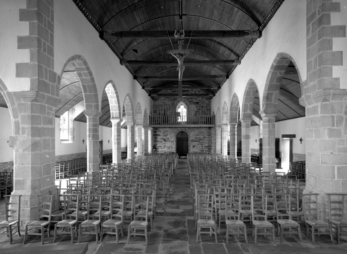 Plomodiern, église paroissiale Saint-Mahouarn : nef, vue générale vers l'ouest, état en 1970Immatriculation