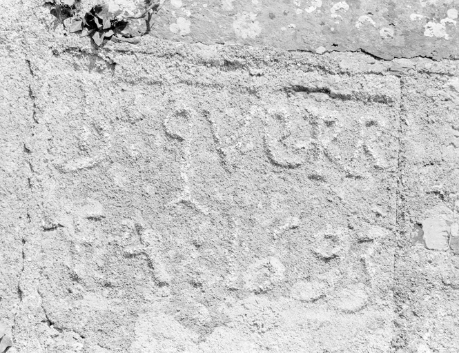 Façade sud, bras du transept, détail inscriptionImmatriculation
