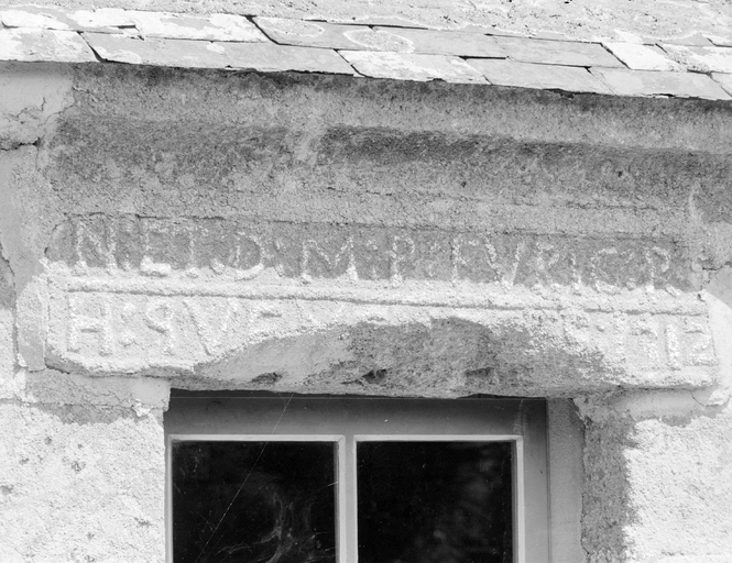 Façade sud, sacristie, détail inscriptionImmatriculation