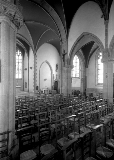 Plonévez-Porzay, église paroissiale Saint-Miliau : nef, vue diagonale, état en 1970Immatriculation