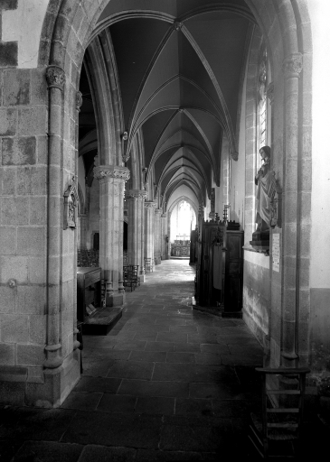 Plonévez-Porzay, église paroissiale Saint-Miliau : bas-côté nord, vers l'ouest, état en 1970Immatriculation