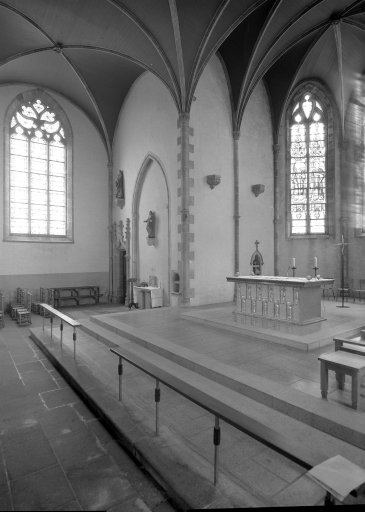 Plonévez-Porzay, église paroissiale Saint-Miliau : croisée du transept, vue diagonale, état en 1970Immatriculation