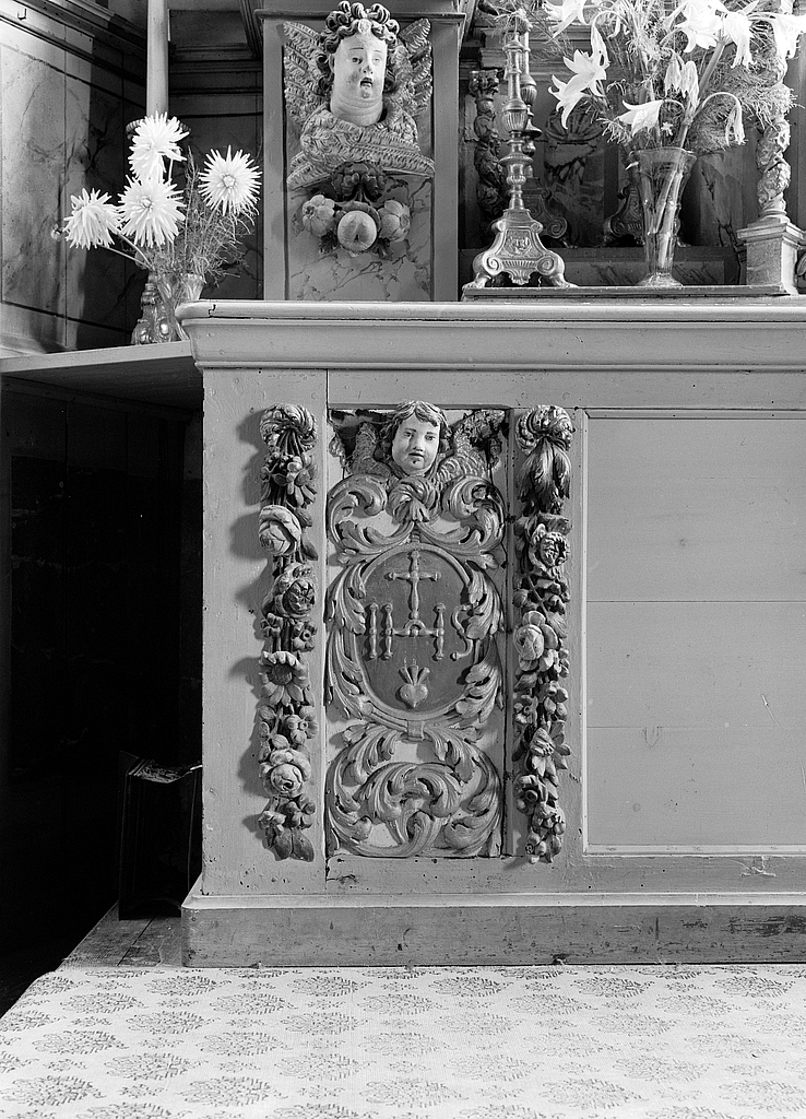 Détail du panneau gauche de l'antépendium.Immatriculation