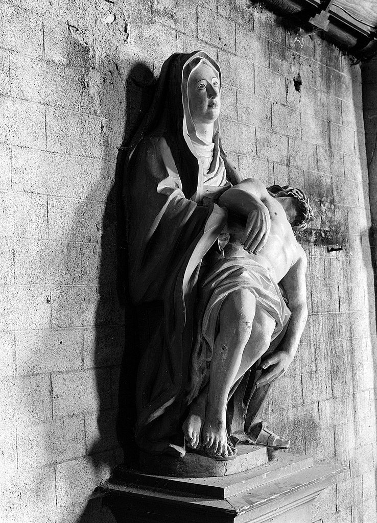 Groupe sculpté (d'applique, petite nature) : Vierge de pitié, chapelle Notre-Dame (Châteaulin),
