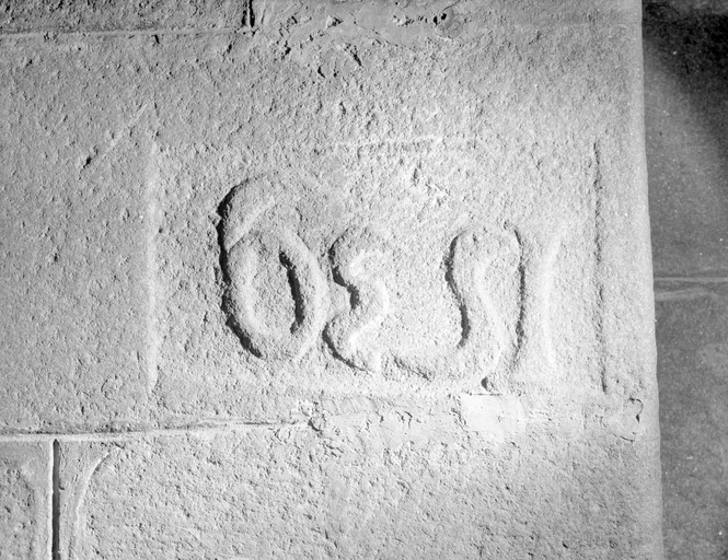 Transept, bras sud, pierre gravée, détail de l'inscription 1539Immatriculation