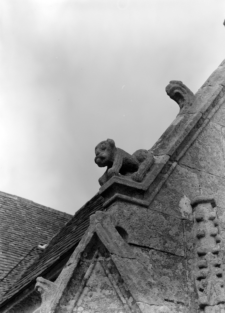 Façade sud, porche, détail pierre d'assise gaucheImmatriculation