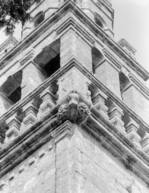 Clocher, fausse gargouille, angle sud-ouest.Immatriculation