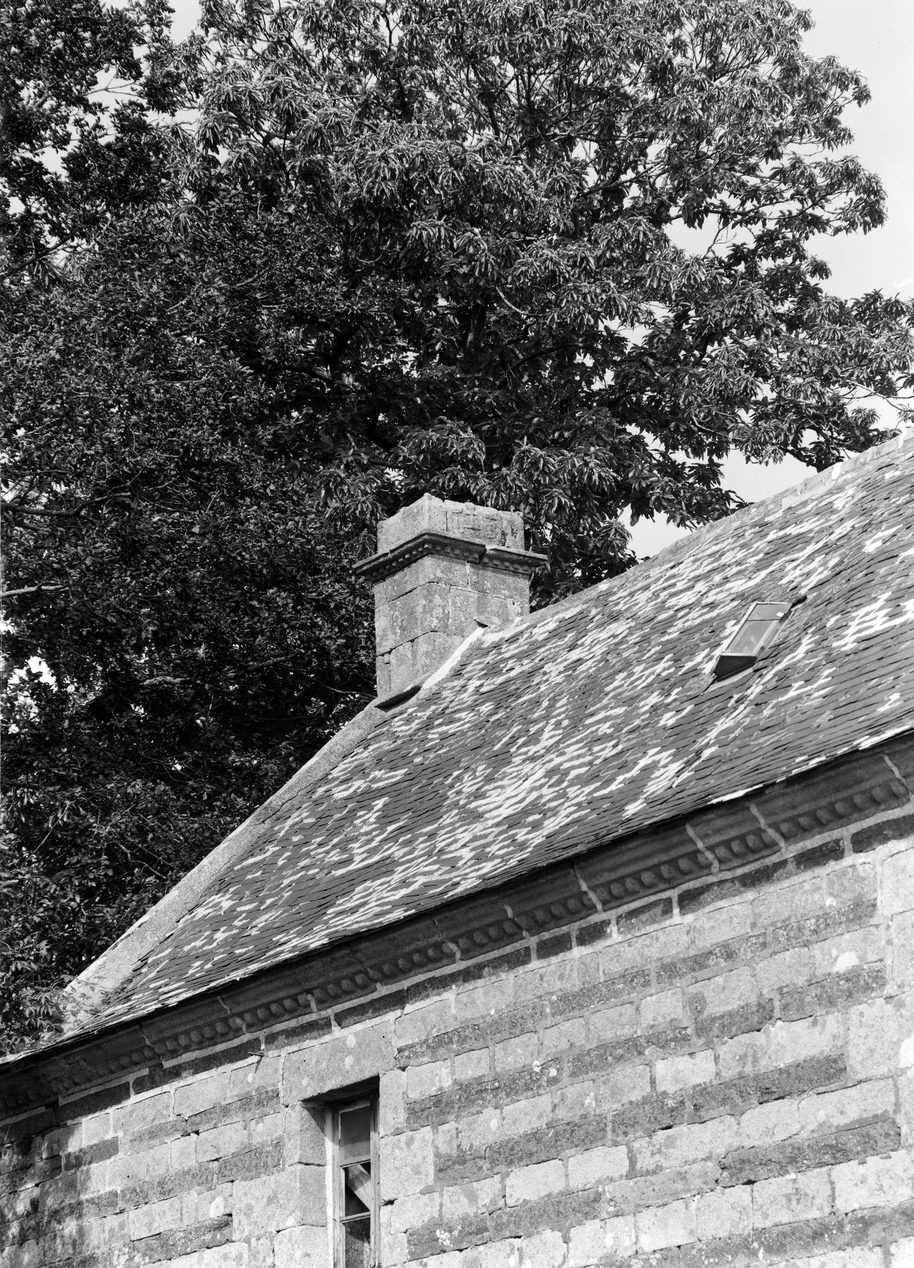 Façade sud, détails corniche, appareillage et souche de cheminée à l'ouestImmatriculation