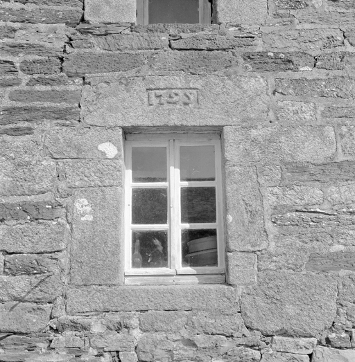 ferme : détail linteau de fenêtre avec inscriptionImmatriculation