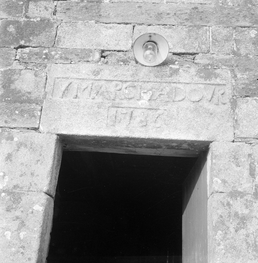 Logis, porte d'entrée, détail inscription sur le linteauImmatriculation