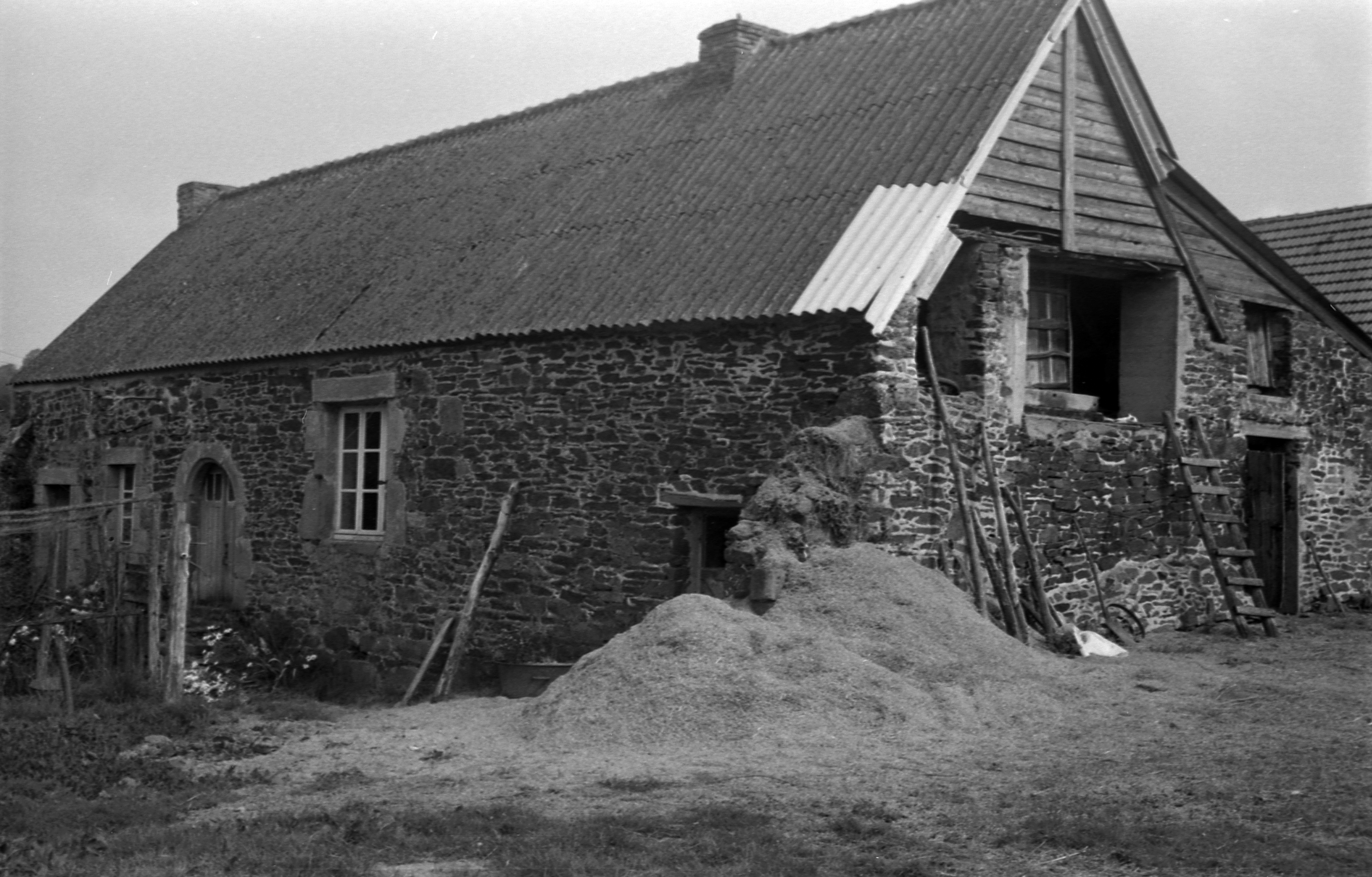 Plougonven, habitat et dépendance, accès au grenier par le pignon (état 1970)Immatriculation